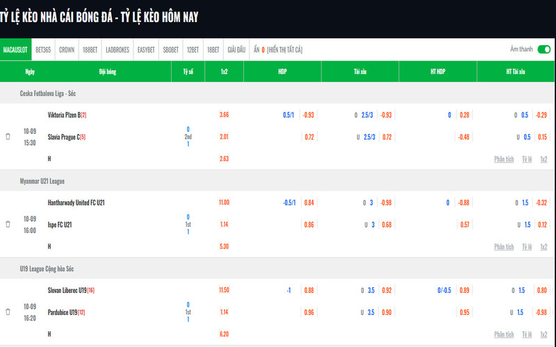 Người dùng có thể tìm thấy đầy đủ các tỷ lệ kèo phổ biến: