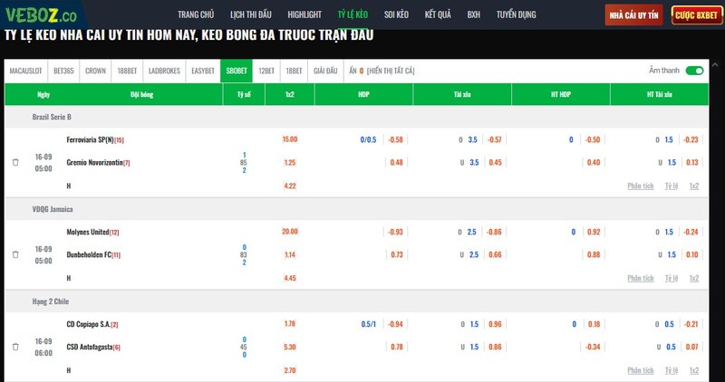 Trong cá cược, tốc độ là tiền. Chỉ chậm vài phút thôi là kèo ngon trôi mất hoặc rơi vào bẫy kèo dụ. Về Bờ Live áp dụng hệ thống update real-time, đồng bộ với các nhà cái lớn như Bet365, M88, 18Bet, 188Bet, Fun88, M88, Crown… Nhờ vậy, anh em luôn nắm thế chủ động: